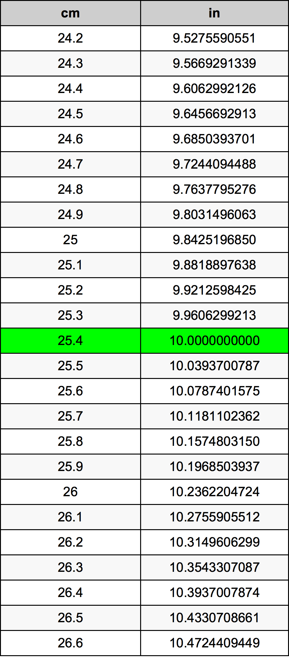 Pour obtenir un résultat décimal exact, veuillez sélectionner « décimal » dans les. Correspondance des diamètres de tuyauteries. Conversion inch en cm inch : Table ou tableau de conversion po en cm vous y trouverez les 100 premiers pouces convertis en centimètres