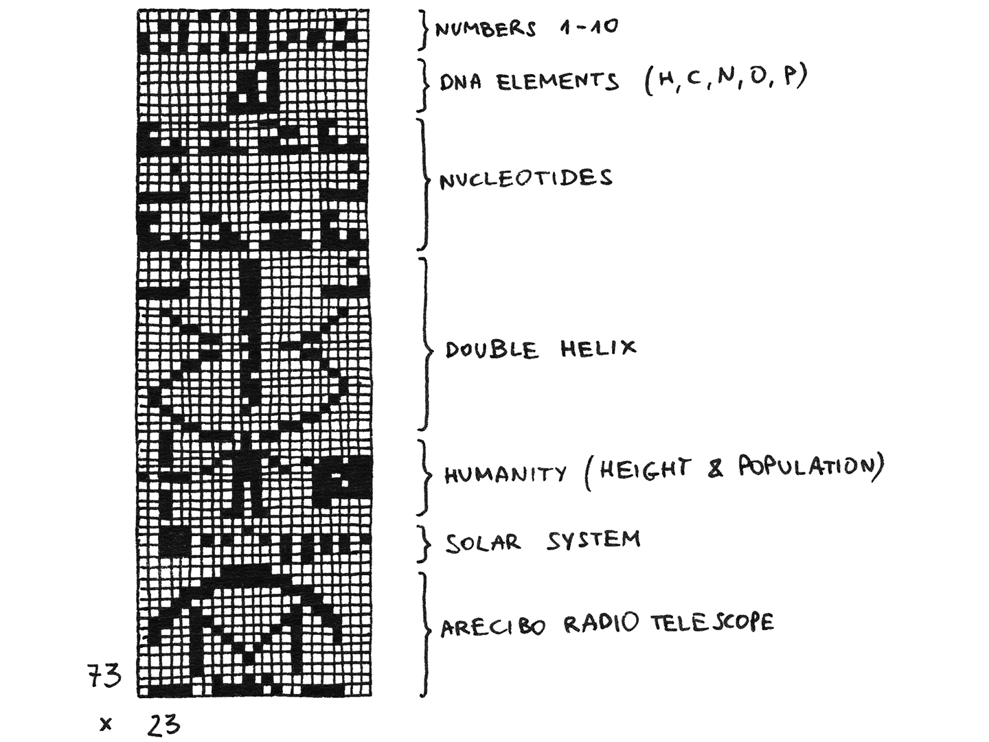 Telugu is very expressive and one of the regular languages of the world. The message is meant to be viewed as a grid of bright (0) and dark (1) points. Arecibo message does contain this of relevance to some people: The message contained information on mathematics, humanity, the solar system, dna, and the.