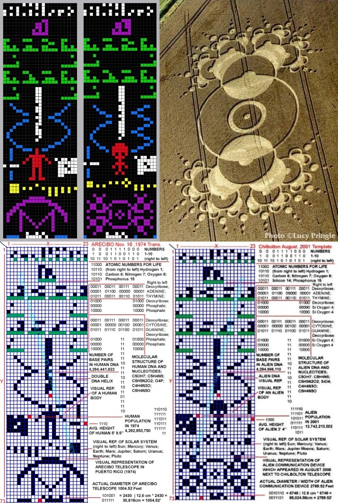 Those are the bare facts concerning frank drake's transmission from arecibo during the upgrade of that radio telescope. The crop circle which occurred in wheat crop at chilbolton, reported on august 19, 2001 was perhaps the most important genuine crop circle which has ever been discovered. On november 16, 1974, seti researchers at the arecibo radio telescope in arecibo, puerto rico, beamed a message into space. Arecibo message of 1974 an alien reply in a crop circle.