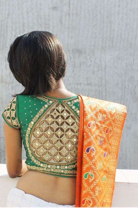 Sara recommends working the pattern with split stitch so you only need to learn one stitch to get started. The actual back neck is kept deep and is covered with a patch of the border. Blouse designs can make or break the look of a saree or lehenga. Easy neck design dear viewer hope you are enjoying my video.