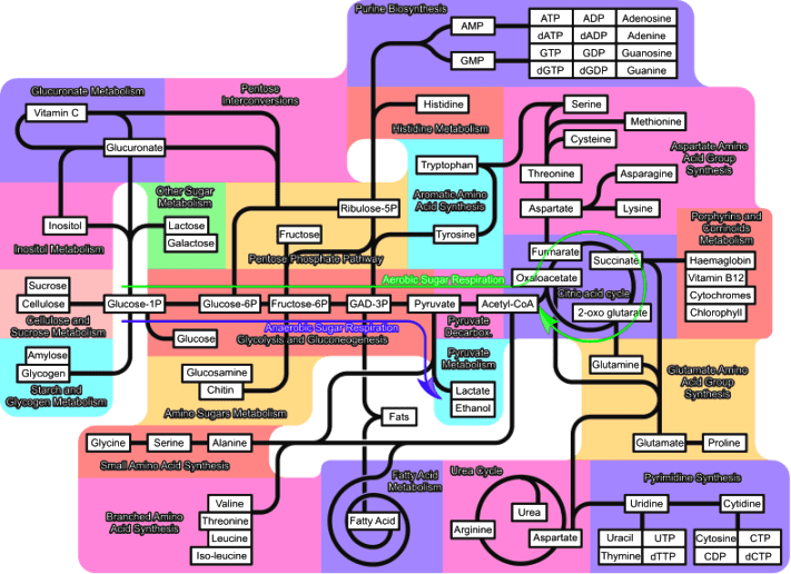 Métabolisme (m) (ucf|ensemble) des transformations moléculaires et des transferts dénergie qui se déroulent de manière ininterrompue dans la cellule ou lorganisme vivant.