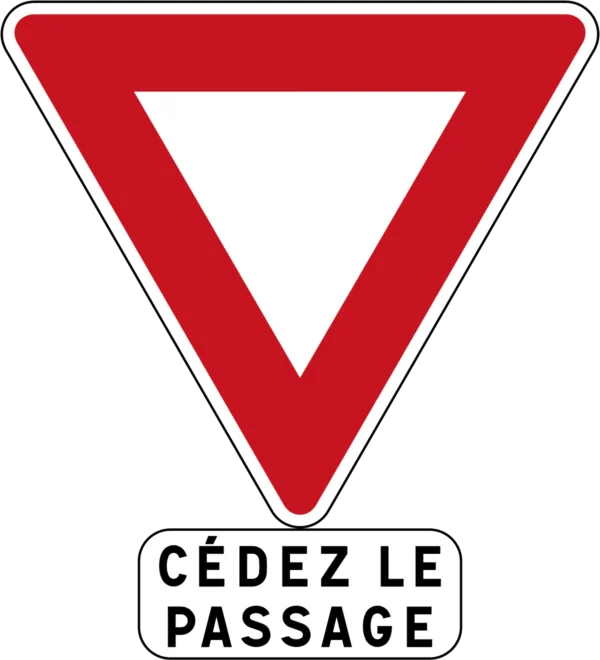 Ce panneau triangulaire est bordé de rouge, signal de la présence d’un danger. Il vous permet de savoir si vous avez la priorité ou au. Dans ce cas, il convient d’implanter un panneau ab6 :