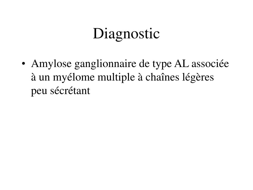 Les radiographies montrent des géodes multiples ou une déminéralisation diffuse. Sur le plan cytologique, le myélogramme a montré une moelle riche, envahie à plus de 10% des plasmocytes chez 92,5% des patients, parmi lesquels 87,5% avaient des plasmocytes dystrophiques. The presence of plasmocytes in the blood (ratio generally below 0.10) indicates a higher production of these cells, usually in response to a recent viral, bacterial or parasitic infection that triggered. À l’epp présence d’un pic monoclonal au niveau des gammaglobulines et à l’iepp présence d’une gammapathie monoclonale type igg lambda avec protéinurie de bence jones positive :