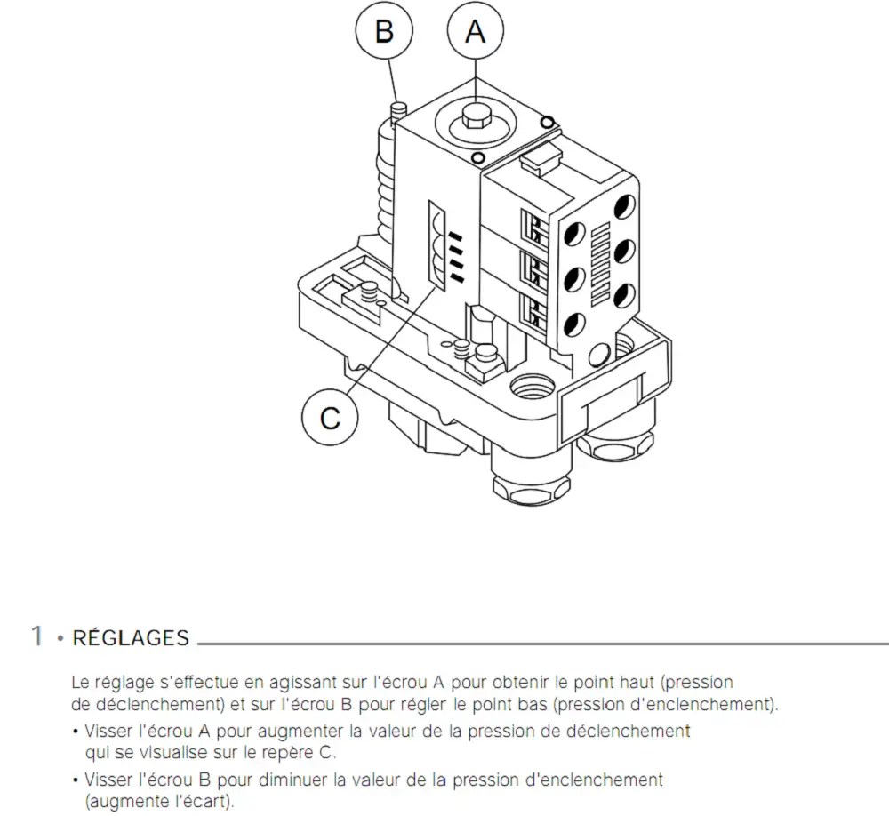 Le réglage d'un pressostat est très simple et ne nécessite pas de raccords complexes, ni d'outils introuvables.